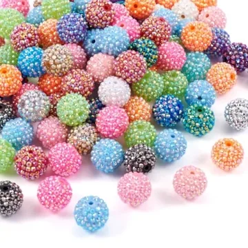 Show more Unleash your creativity with the Cheriswelry 100pcs 20mm Round Resin Rhinestone Chunky Bubblegum Ball Beads. Crafted from top-quality resin and embellished with stunning crystal-clear rhinestones, these dazzling disco ball beads not only look fabulous but are also designed for durability. Measuring approximately 20mm in diameter, they come with a convenient hole size of 2~2.5mm, making them easy to use for a variety of crafting adventures. Perfect for crafting jewelry, accessories, or décor, these beads add a charming sparkle to all your creations!