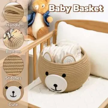 Show more Introducing the charming CherryNow Cotton Rope Basket, an adorable yet functional solution for your storage needs! Perfectly designed with a delightful bear face, this multi-function basket serves not only as a stylish organizational tool but also as a unique décor element for your playroom, nursery, or bathroom. Made from durable yet soft cotton coiled rope, this basket promises quality and elegance in each stitch. Measuring 10.5 inches in diameter and 8.5 inches in height, it is spacious enough to accommodate a variety of items, from toys and baby essentials to towels and cute décor pieces.