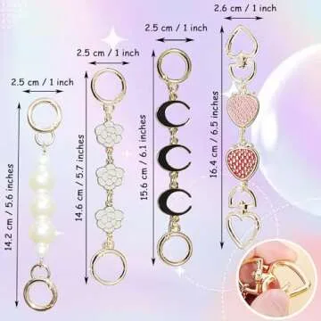 Chewarelly 4Pcs Purse Chain Extender Bag Strap Extender Purse Strap Extension Replacement for Women, Girl Purse Bag Making Supplies(Moon, Strawberry, Flower, Pearl)