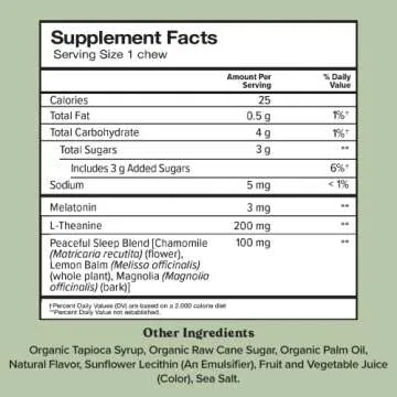 Chewsy Peaceful Sleep Chews, Sleep Support, 3 mg Melatonin, 200 MGS L-Theanine, Chamomile, Lemon Balm, Magnolia, Nighttime Sleep Aid, Naturally Minty Chews, Promotes restful Sleep, 30-Day Supply (1)