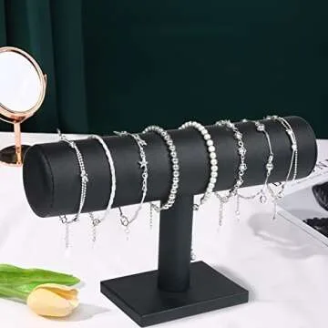 ChezMax Necklace Jewelry Display Jewelry Stand Hovering T-Bar Bracelet Holder for Home Organization, Black Leatherette