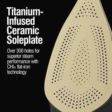 CHI Steam Iron for Clothes with Titanium Infused Ceramic Soleplate, 300+ Holes for Powerful Steaming