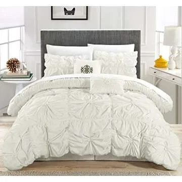 Chic Home White Bed in a Bag Comforter Set, Queen Size (6 Piece), Halpert - Pintuck Pinch Pleat Microfiber Bedding - Shams, Bed Skirt, Flat & Fitted Sheet, Pillowcases, Breakfast & Decorative Pillow