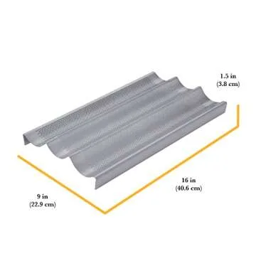In a market filled with baguette pans, the Chicago Metallic Non-Stick Perforated Baguette Pan stands out for its dual nonstick coating which ensures a seamless baking experience, free from the common issue of stuck bread. Many competitors fall short in delivering the same level of quality; this heavyweight aluminum construction provides superior heat distribution and durability that others simply cannot replicate. Additionally, the pan's perforated design facilitates optimal airflow around the dough, fostering that iconic crusty exterior—features that many alternatives overlook.