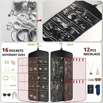 Equipped with a unique dual zipper design, this jewelry organizer not only seals out dust but also ensures quick access to your favorite pieces. The zippers are crafted for smooth operation, making it easier than ever to retrieve items without hassle. You can fold the organizer to keep your jewelry safe while traveling, preventing any unwanted slips or tangles. Plus, the 360-degree hook allows for easy rotation, enabling you to browse your accessories effortlessly. Say goodbye to clutter and chaos with this ultimate jewelry storage solution.