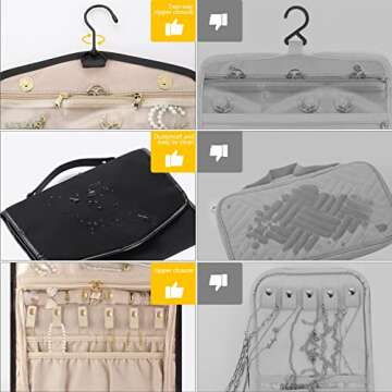 CHICECO Travel Jewelry Organizer Roll for Women, Dual Zippered Large Foldable Jewelry Case for Necklaces Earrings Rings (Black)