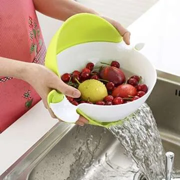 Show moreIntroducing the CHICHIC 2-in-1 Kitchen Strainer/Colander & Bowl Set, the ultimate kitchen companion for those who value convenience and versatility in their cooking experience. Ideal for home cooks and seasoned chefs alike, this innovative product combines a durable colander with a large, sturdy bowl, enhancing your culinary tasks in a thoughtful, colorful way. With a design that effortlessly prevents water from flowing back into the colander, you can strain pasta, rinse fruits, and wash vegetables without the usual mess, making meal preparation a breeze.