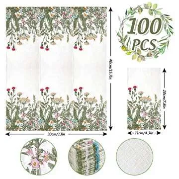 ChicRosa 100Pcs Floral Guest Napkins Wildflower Disposable Paper Napkins Botanical Green Leaves Herbs Dinner Hand Napkin for Home Kitchen Bathroom Holiday Party Supplies, 15.7 x 13 Inch.