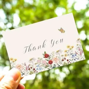 ChicRosa 24 Pack Wildflower Thank You Cards Bulk Vintage Flower Greeting Cards with Kraft Envelope Sticker Retro Floral Blank Note Cards for Birthday Wedding Baby Shower Bridal Shower, 4 x 6 Inch