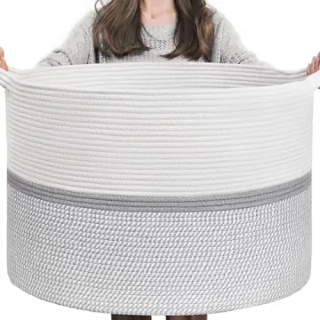 Introducing the CHICVITA XXL Extra Large Cotton Rope Woven Basket, the ideal blend of fashion and functionality! Measuring 22" x 22" x 14", this spacious storage solution is designed to accommodate a variety of items from throw blankets to soft toys. Its generous size also makes it perfect for storing clothes or other household essentials, helping you keep your living areas tidy while adding a touch of elegance to your decor. Crafted from soft cotton rope,...