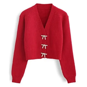 Show moreAre you ready to elevate your wardrobe with a touch of festive elegance? Meet the CHICWISH Women Crop Cardigan Sweater, an exquisite blend of chic style and unparalleled comfort, designed to turn heads at any occasion. This adorable cardigan features a stylish V-neck design that perfectly highlights your neckline, while the creative bowknot brooch effortlessly adds a playful dimension to your outfit. Made from an optimal blend of 42% Acrylic, 28% Nylon, and 30% Polyester, this cardigan provides just the right amount of stretch, ensuring a fabulous and flattering fit.