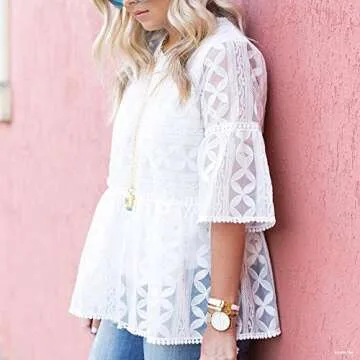 Why You Will Love This Product: Wearing the CHICWISH Women's White Lace Organza Dolly Shirt is more than just dressing up; it transforms how you feel about your style. The soft and airy fabric paired with a loose fit means you can express yourself confidently while remaining comfortable. Whether it’s for a casual meet-up or a work function, this blouse feels like you’re wearing a piece of art, inspiring compliments and confidence.