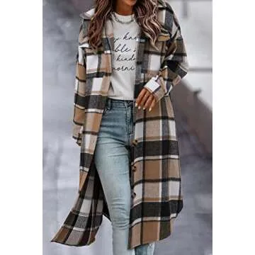 Show moreIntroducing the CHICZONE Women’s Casual Lapel Button Down Long Plaid Shirt Flannel Shacket Jacket, where chic fashion meets utmost comfort! This exquisite plaid shacket is thoughtfully designed for the modern woman searching for versatile style and cozy warmth. Featuring a striking color block checkered pattern, it beautifully enhances any outfit and serves as a stylish addition to your wardrobe essentials. The medium-weight fabric ensures durability while maintaining an exceptionally soft feel against your skin. Dress it up for those special nights out or keep it relaxed for casual outings; this oversized boyfriend trench coat is all about effortless elegance.