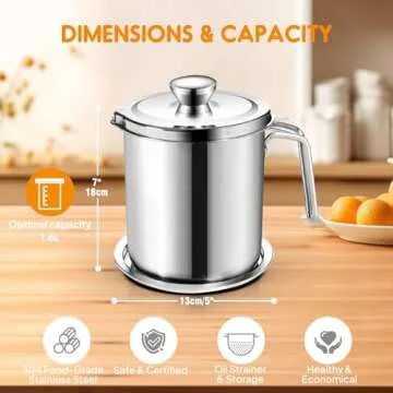 Chihee Grease Container Stainless Steel Bacon Grease Saver with Fine Mesh Strainer 2L / 67.6 fl oz Oil Container Grease Can with Dust-proof Lid Non-slip Tray for Kitchen Storing Frying Cooking Grease