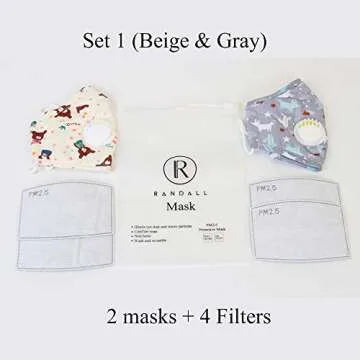 Children’s Reusable Cotton Dust Face Cover with Filter. 2 Masks Plus 4 Filters. Wash and Re-usable Made with 100% Cotton for A Comfortable Wear All Day Long. (Gray n Beige)