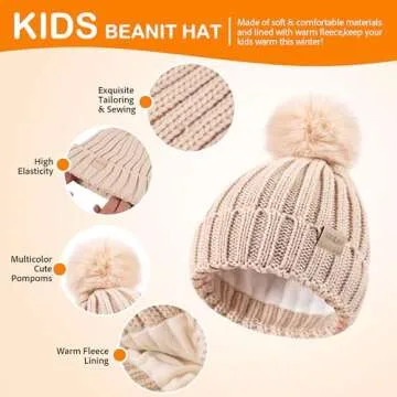 Children Winter Beanie Hat Scarf Gloves Set for Toddlers 3-9 Years