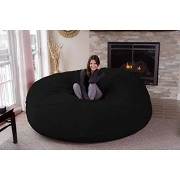 Chill Sack Bean Bag Chair: Giant 8' Memory Foam Furniture Bean Bag - Big Sofa with Soft Micro Fiber Cover - Black Furry