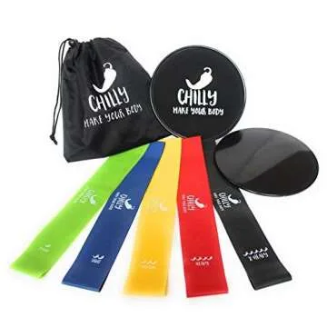 Chilly Core Sliders Gliding Discs and 5 Resistance Bands, Booty Band Fitness Bands and Sliders Workout