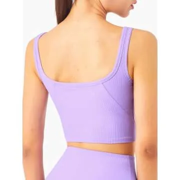 Chilylori Longline Sports Bra Ribbed Workout Crop Top Tank Tops for Women Yoga Tops for Women Workout Tops Fitness Sport Bra Workout Tops for Women Sports Bra Purple L