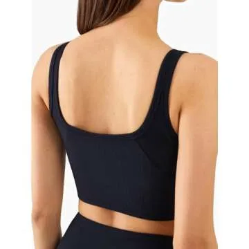 Chilylori Women's Seamless Sports Bra Workout Crop Top Ribbed Padded Longline Wirefree Medium Support Tank Tops Fitness Bras Top Workout Tops for Women Sports Bra Black M