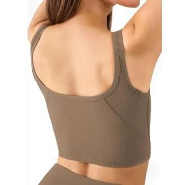 Chilylori Women's Seamless Sports Bra Workout Crop Top - Ribbed Padded Longline Medium Support Fitness Bras in Cacao Brown