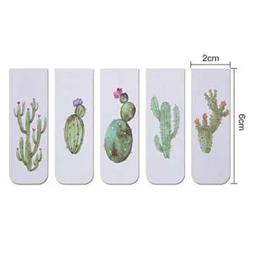Show moreIntroducing the Chinco 10 Pieces Magnetic Bookmarks Set, your ultimate reading companion designed to enhance your literary adventures! Featuring a vibrant assortment of unique patterns, including adorable cacti designs, these bookmarks are perfect for book lovers of all ages. Measuring approximately 6 x 2 cm each, they are perfectly sized to fit snugly in any book, planner, or cookbook, while their strong magnetic feature ensures they stay in place without the risk of falling out. Made with high-quality materials, these bookmarks boast a beautiful finish that not only adds style but also durability, promising many captivating reads ahead!
