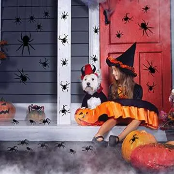 Chinco 4 Sheet 45 Pieces Halloween Spider Stickers Large Scary Spider Wall Decal Stickers Spider Web Wall Sticker Decorative Happy Halloween Spider Wall Clings for Halloween Spooky Party Decorations