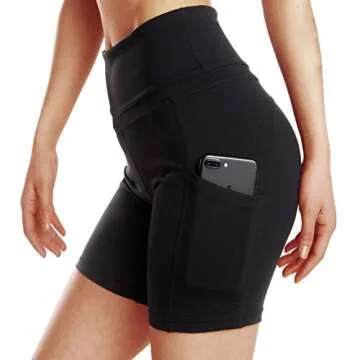 ChinFun Yoga Shorts for Women High Waist Tummy Control 4 Way Stretch Workout Running Shorts Side Pockets Black Size XL
