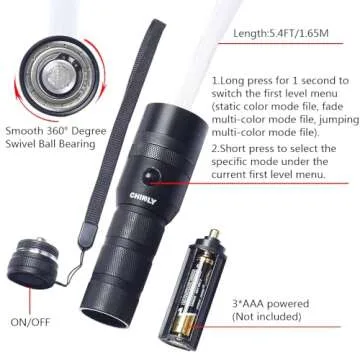 CHINLY Fiber Optic Whip, LED Light Whip for Dancing, with 40 Color Effect Mode and 360°Swivel, Rave Accessories for Parties, Light Shows, EDM Music Festivals, Unique Gifts for Girlfriend,Girl,Wife