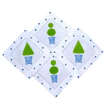 Chinoiserie Topiary Linen Cocktail Napkins – Elegant Entertaining Essentials