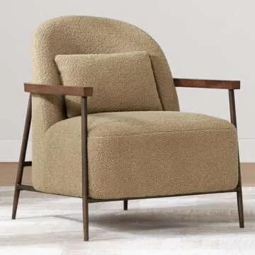 CHITA Accent Chair for Living Room Set of 2, FSC Certified Modern Upholstered Faux Sherpa Fabric Armchair with Metal Frame and Wooden Armrests, Camel