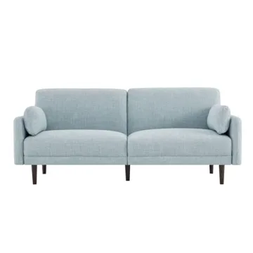 Show moreIntroducing the CHITA Mid-Century Modern Sofa, a stunning blend of style and functionality perfect for modern living spaces. Measuring 73.2"W x 31.9"D x 31.7"H, this cozy fabric couch is designed to accommodate up to 500 lbs, making it a perfect choice for anyone looking for comfort and durability. The sleek, slim track arm is not just a design statement but also maximizes your seating area, making it ideal for intimate movie nights or gatherings with friends and family. With its vibrant mint color, it effortlessly elevates the aesthetics of any room, bringing a pop of color to your living area.