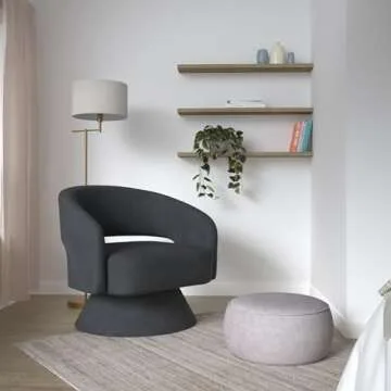 CHITA Swivel Accent Chair Armchair, FSC Certified Velvet Barrel Chair for Living Room Bedroom, Dark Grey