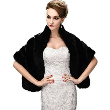 CHITONE Women's Black Faux Fur Wrap Cape for Elegant Events
