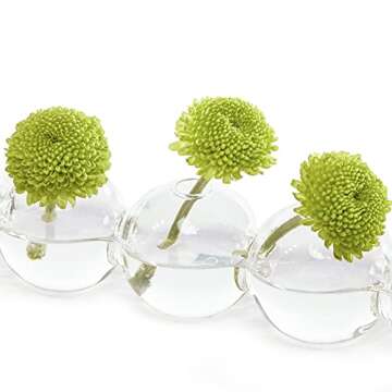 Show moreDiscover the charm of the CHIVE ‘Caterpillar’ Bubble Bud Vase, a delightful centerpiece designed to elevate your floral arrangements with style and elegance. This unique vase, measuring 10.25 inches long and 1 inch wide, features six connected glass chambers that allow you to showcase six single stems of your favorite short flowers or decorative clippings. Its innovative design not only enhances the beauty of your blooms but also ensures they maintain their freshness with just one fill of water for the entire vase.