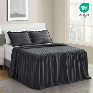 CHIXIN Ruffle Skirt Bedspread King Size - 30" Long Drop, Shabby Chic & Farmhouse Style, Soft and Lightweight Bedding Cover, 3 Piece Set, Dark Grey
