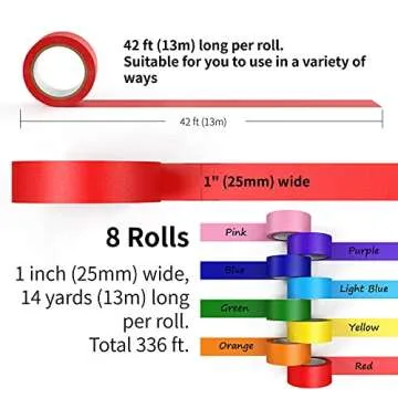 CHIYUNS Colored Masking Tape 8 Rolls, 1 inch Wide x 14 Yards Long, Craft Color Painters Colorful Art Rainbow Labeling Tapes Marking Tape for Kids Crafts Moving Classroom, 8 Colors