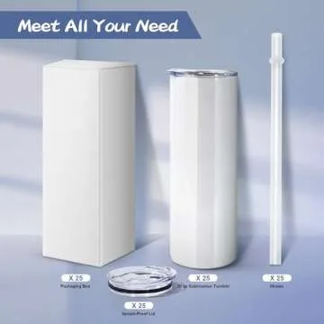 CHLJAR Sublimation Tumblers Bulk 20 oz Skinny, 25 Pack Stainless Steel Double Wall Insulated Straight White Blank Cups with Lid and Straw, Polymer Coating for Heat Transfer