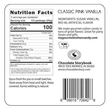 Show moreIndulge your sweet tooth with the delightful Chocolate Storybook Gourmet Handspun Cotton Candy. This enchanting treat features a classic pink flavor, perfectly spun to create a fluffy and airy texture that melts in your mouth. Packaged in a charming 1.75-ounce container, this gourmet cotton candy is not only visually appealing but also offers a burst of nostalgic sweetness that will transport you back to your childhood. Whether you're planning a party or looking for that unique snack to brighten your day, this cotton candy promises to satisfy your cravings with its delectable taste.