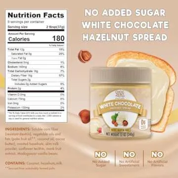 ChocZero Keto White Chocolate Hazelnut Spread - Keto Friendly, No Sugar Added, Best Low Carb Dessert, Perfect Topping for Breakfast, Naturally Sweetened with Monk Fruit (1 jar, 12 oz)