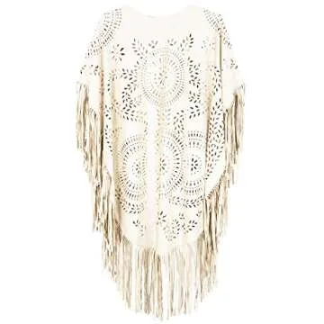 Show moreStep into the spotlight with the stunning **CHOiES Suedette Cut Out Asymmetric Fringed Cape Kimono Blouse with Tassel**, crafted for the modern woman who seeks a blend of casual elegance and playful style. Measuring 180cm (70.87 inches) in length, this one-size-fits-all blouse boasts a chic floral cut-out design, making it a versatile piece that effortlessly elevates any outfit. Whether you're dressing up for a night out or keeping it casual during daytime adventures, this kimono blouse strikes the perfect balance between sexy and stylish.