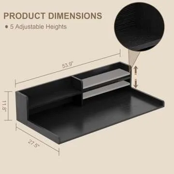Show more Transform your laundry experience with the ChooChoo 2-Tier Washer Dryer Countertop. This innovative storage solution is beautifully designed with a modern black finish and crafted from durable engineered wood, perfect for creating a sophisticated and organized look in your laundry room. Offering a generous flat surface, this countertop allows for optimal functionality, standing out as both a workspace and a storage area. With its adjustable 2-tier design, you can customize shelf heights to accommodate everything from tall detergent bottles to baskets, seamlessly adapting to your needs.