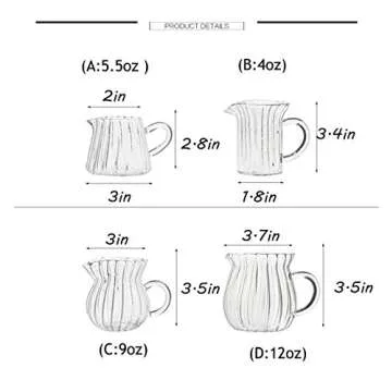 CHOOLD Creative Embossed Stripe Clear Crystal Glass Creamer Pitcher/Serving Pitcher/Sauce Pitcher/Milk Coffee Creamer Jug for Kitchen(4/5.5/9/12oz)