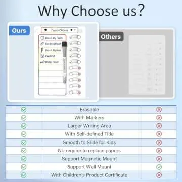 Introducing the KAQUBE Dry Erase Chore Board, the perfect blend of functionality and fun, designed to empower children with essential life skills. This innovative task chart helps kids tackle daily chores, maintain morning and bedtime routines, and practice good manners. With an engaging and interactive design, it features 10 colorful sliding buttons that give children an interactive way to acknowledge their accomplishments. Say goodbye to the daily chore struggle and hello...