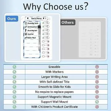 Chore Chart for Kids Dry Erase Chore Board ADHD Tools for Kids to Do List Checklist Task Board Routine Chart Planning Board for Fridge with 10 Sliders and Magnetic Marker, White and Blue, 2 Pack