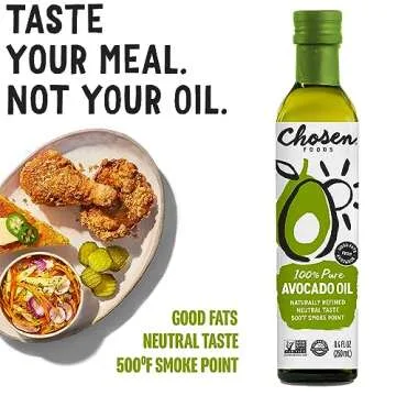 Chosen Foods 100% Pure Avocado Oil, Keto and Paleo Diet Friendly, Kosher Oil for Baking, High-Heat Cooking, Frying, Homemade Sauces, Dressings and Marinades (8.4 fl oz)