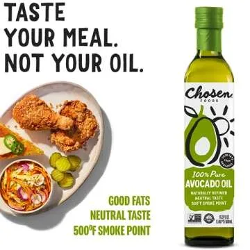 Chosen Foods 100% Pure Avocado Oil, Keto and Paleo Diet Friendly, Kosher Oil for Baking, High-Heat Cooking, Frying, Homemade Sauces, Dressings and Marinades (16.9 fl oz)