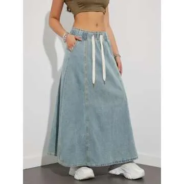 Show moreIntroduce a touch of bohemian flair into your wardrobe with the Chouyatou Women's Casual Paperbag Elastic High Waist A Line Long Maxi Flare Denim Skirt. This skirt effortlessly blends comfort and style, making it a must-have for any fashion-savvy woman. Crafted from lightweight and colorful denim, it features a full-length design that offers a beautiful drape while allowing you to move freely throughout your day. With its elastic waist and adjustable drawstring, this skirt has been designed to cater to a variety of body types, ensuring a personalized fit that flatters your silhouette.