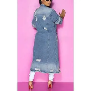 Show moreIntroducing the dazzling Chouyatou Women's Spring Fashion Ripped Holes Maxi Long Denim Jacket Trench Coat, an essential addition to your wardrobe that merges style with comfort. This stunning coat is meticulously crafted from lightweight and soft faded wash denim, ensuring it’s perfect for seasonal transitions and versatile enough for various occasions. With its unique design, this jacket features intentionally distressed holes that add an edgy flair, making it a must-have for fashionistas!