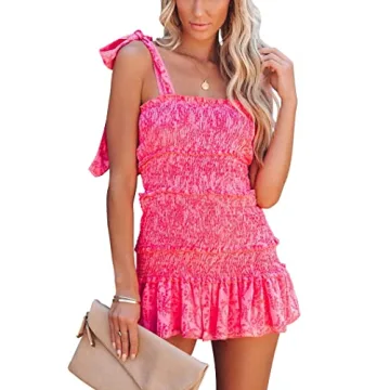 Introducing the Chouyatou Women's Summer Floral Spaghetti Strap Square Neck Ruffle Tie Mini Smocked Dress, a statement piece that promises to elevate your summer wardrobe. This trendy mini dress boasts an eye-catching hot pink floral print that's perfect for adding a pop of color to your outfit. The adjustable tie shoulder straps provide a customizable fit, ensuring that you feel both comfortable and stylish. With a flattering square neckline and a chic high waist design, this dress beautifully...